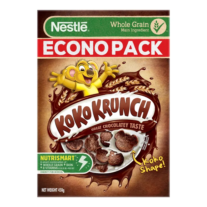 Breakfast Cereal - NESTLE KOKO KRUNCH Whole Grain Chocolate Flavoured Wheat Curls Breakfast Cereal Econo Pack 450g