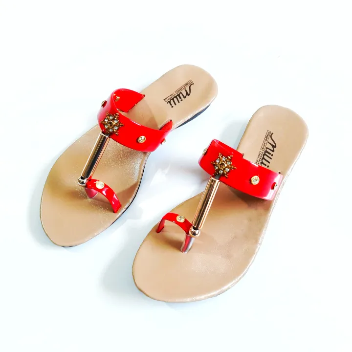 New Fancy Stylish Casual Ladies Slippers For Women And Girls Flat Karachi Style Slipper Party Wedding Footwear ( Red )