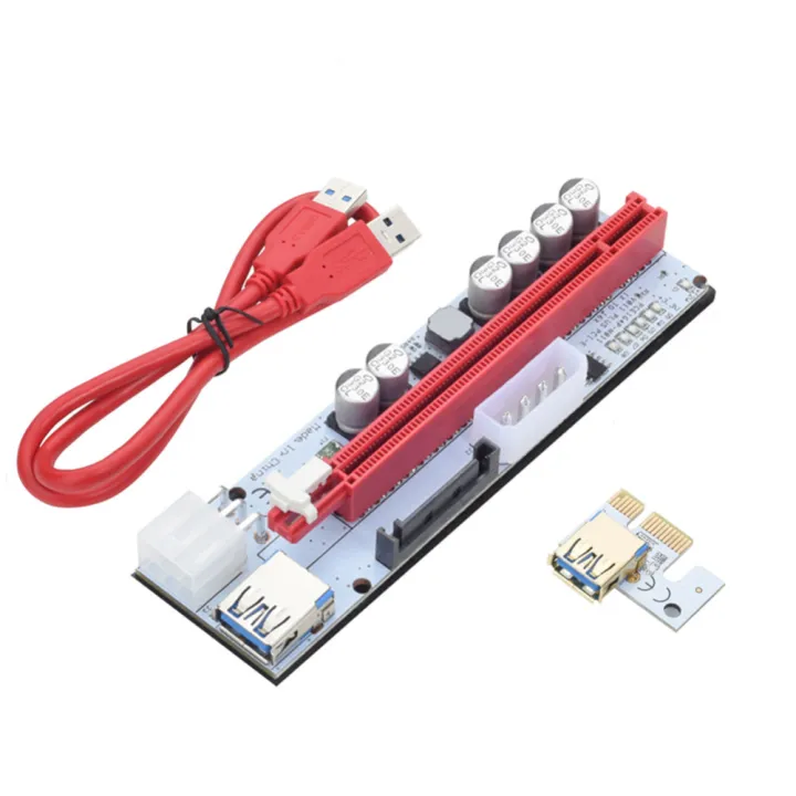 New PCI-E Pcie Riser LED Riser PCI Express Adapter 6Pin SATA Adapter Card SATA to USB 3.0 Cable 1X 16X for BTC Miner good effect and easy to use