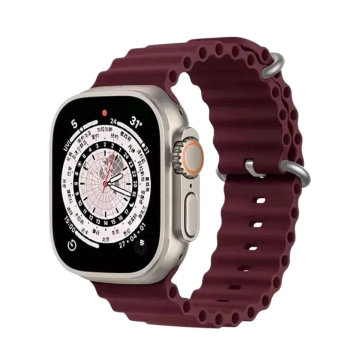 Ocean Silicone Band Strap for Apple Watch Ultra/Series 8, 7, 6, 5, 4, SE, 42mm, 44mm, 45mm, 49mm, Adjustable, Lightweight, Water-Sports Compatible