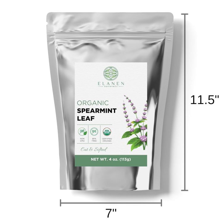Organic Spearmint Leaves 100 grams, USDA Certified Organic Spearmint Tea Dried Loose Leaf, Dry Mint, Cut & Sifted