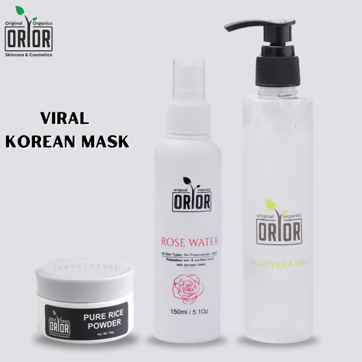 Original Organics Orior Viral Korean Mask | Rice Powder | Aloe Vera Gel | Rose Water | Pack of 3 | Best Viral Korean Rice Face Mask Online in Pakistan | Glass Skin