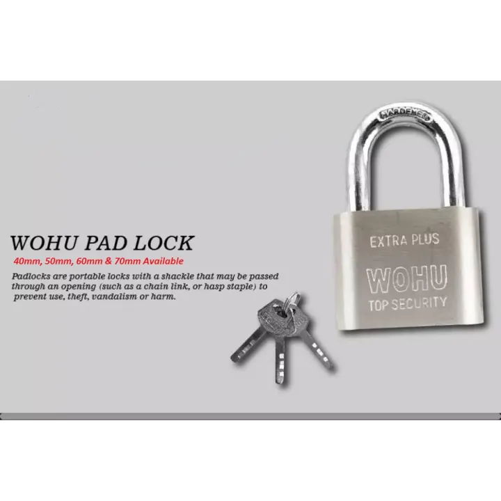 ORIGINAL WOHU STEEL STANDARD SHACKLE PAD LOCK WITH 4 WORKING KEYS 40MM