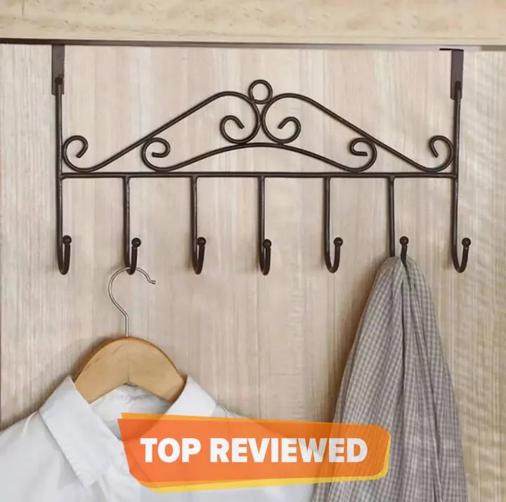 Over Door Hanger with 7 Hooks Metal Over the Door Towel Hook Organizer, Hanging Storage Rack for Hat, Coats, Purses, Scarves, Clothes, Jackets, Belt, Bedroom, Bathroom, Closet