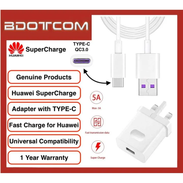 Original Huawei SuperCharge Power Adapter Charger with USB TYPE-C Cable for Huawei P20, P20 Pro Mate 10, Mate 10 Pro, Mate 20, Mate 20X, Mate 20 Pro, P30, P30 Pro