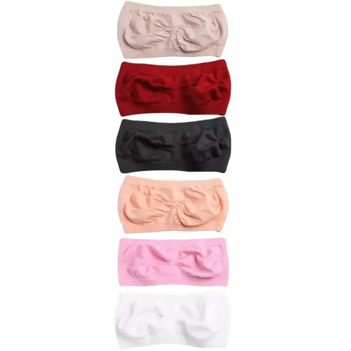 Pack of 05 Women Strapless Bra Free Size and non Padded Multicolor (Fit on 28-36)