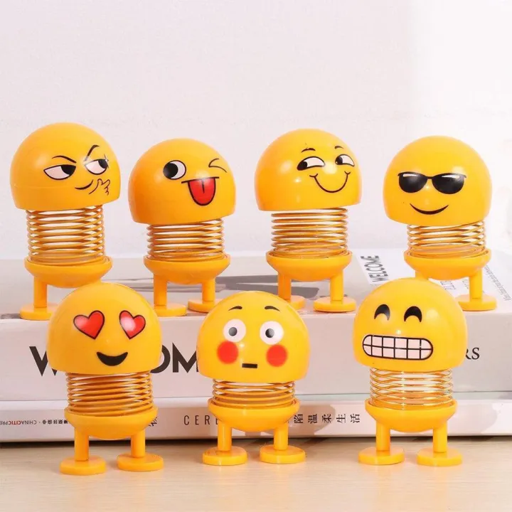 Pack of 2 Dancing Spring Emoji Bounce Toy for Car Dashboard