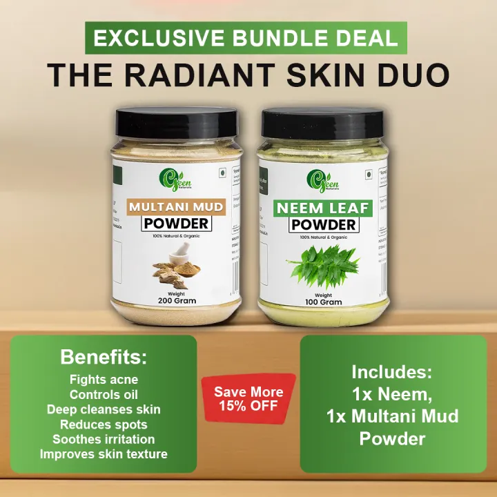 Pack of 2 - Organic Multani Mitti Powder + Neem Leaves Fine Powder | Neem Leaf Powder Jar