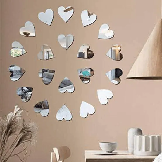 Pack of 20 Aesthetic 3D Heart Mirror Wall Stickers – Minimalist Acrylic Wall Art for Bedroom, Living Room & Home Decor
