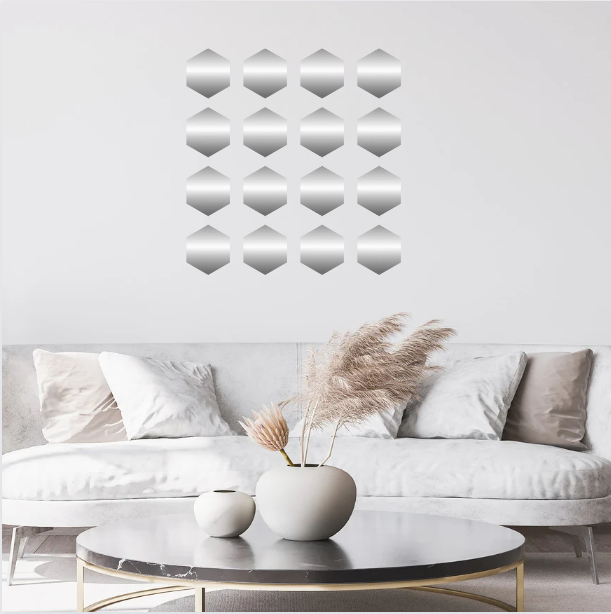 Pack Of 21 Hexagon + Diamond Shape Wall Stickers Available In 5 Different Colors | Red, Black, White, Golden And Silver | Non Mirror Hexagon Wall Stickers For Living Room Unique Design | Wall Stickers For Kitchen Waterproof | Wall Stickers For Bedroom Gir