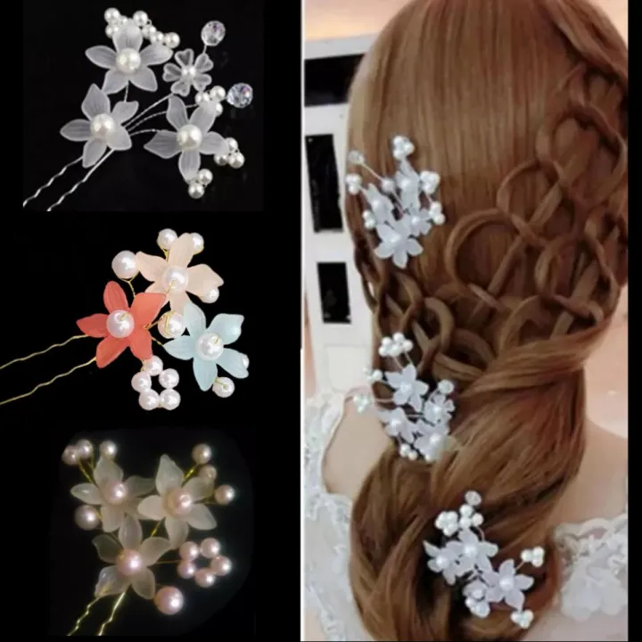 Pack of 3 Fancy Hair pins Large U Shape Pins,Jura Pins, Braide Flower Pins & Bun Pins for Wedding Bride Party Hair Accessories
