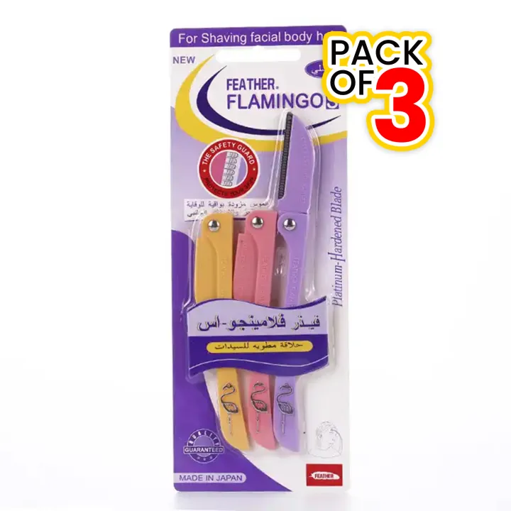 Pack of 3 Feather Flamingo Facial Touch-up Razor - Gentle and Precise Hair Removal for Smooth, Radiant Skin