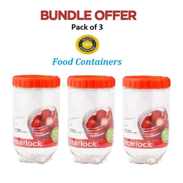 Pack of 3 Multipurpose Interlock Food Container Storage Jars 750 ml Refrigerator Container