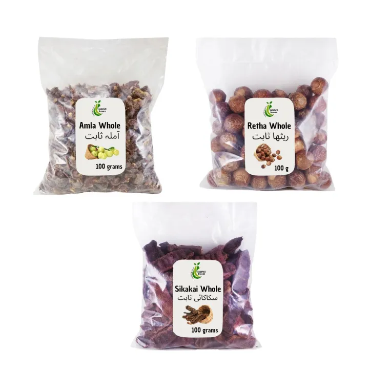 Pack of 3 Organic Amla Reetha Shikakai Whole 300g