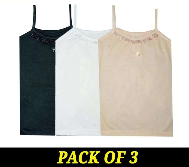 Pack of 3 Summer Soft Cotton Full Camisole For Little Girls Kids Long Shameez Long Tank Tops Undershirt For Little Kids Girls (4 to 6 Years Old) - Skin/Black/White