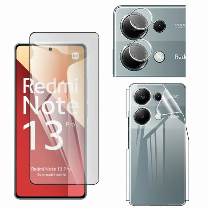 Pack of 3 - Xiaomi Redmi Note 13 Pro 4G Tempered Glass Screen Protector 2.5D Polish Glass + Back Protector Hydrogel Soft TPU Clear Jelly Film Protection With Sides Cover + 9H Flexible Camera Glass Lens Protector For redmi note13 pro - Transparent