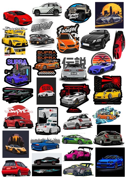 Pack of 30 Car Stickers for Girls Sticker For Boys Stickers - sports Car Sticker Kids Sticker Car Lover Sticker For Laptop & Mobile Sticker 2 Inch x 2 Inch Each Sticker Size