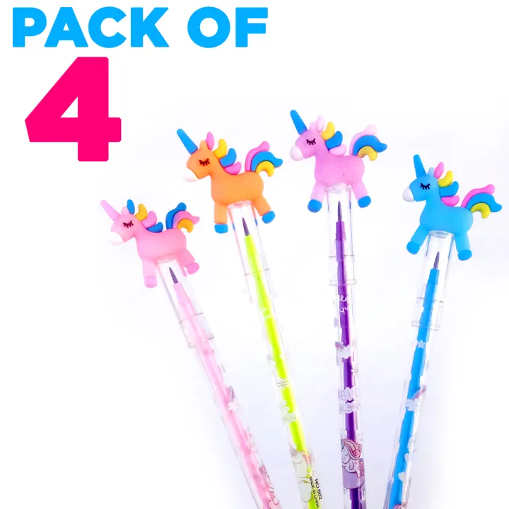 Pack of 4 Rainbow Unicorn Pencil available in colors For Kids - School office Stationery Gifts | Cute stationary items for girls