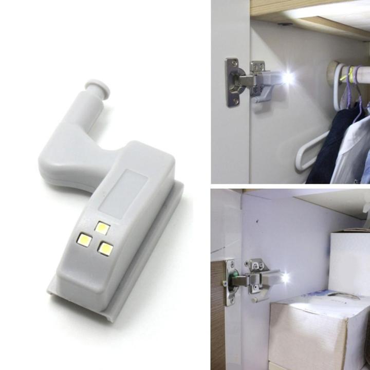 Pack of 4 Universal Cabinet Hinge LED Light Sensor Light with Battery for Cupboard Modern Kitchen Wardrobe Cabinet almirah Closet Automatic undercabinet Mini Hinge Lights Lamp-Warm White