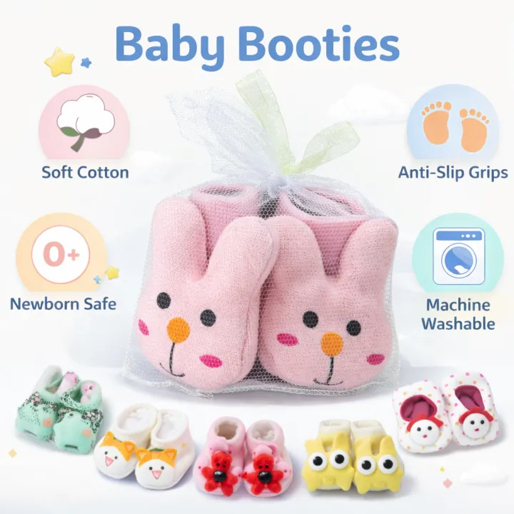 Pack of 5 - Baby 2 in 1 Socks Shoes / kids Toddlers Booties 0 - 12 month - Multicolour