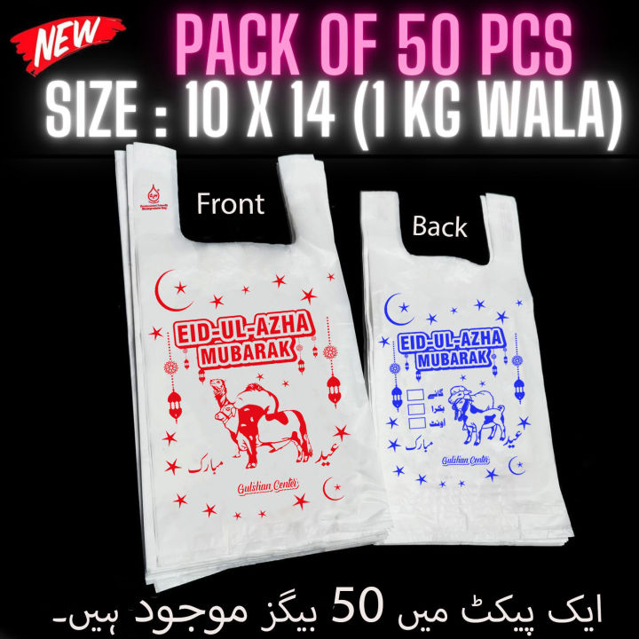 Pack of 50 Biodigradable Eid mubarak Plastic Shopping Bags, Eid Mubarak plastic shoppers , Bags for EID, bags for meat , Four sizes available Eid Mubarak plastic shopper