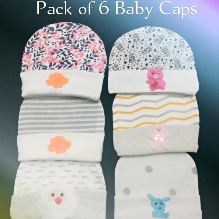Pack of 6 Newborn Baby Caps For Kids (0-3 Months)