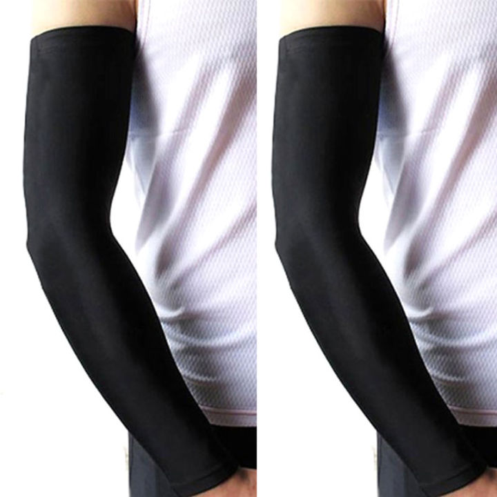 Pair Of Free Size Arm Sleeves for Summer Full Bazo Cover Sunlight Protection of Bared Arms for All Stretchable Fabric in Black and White