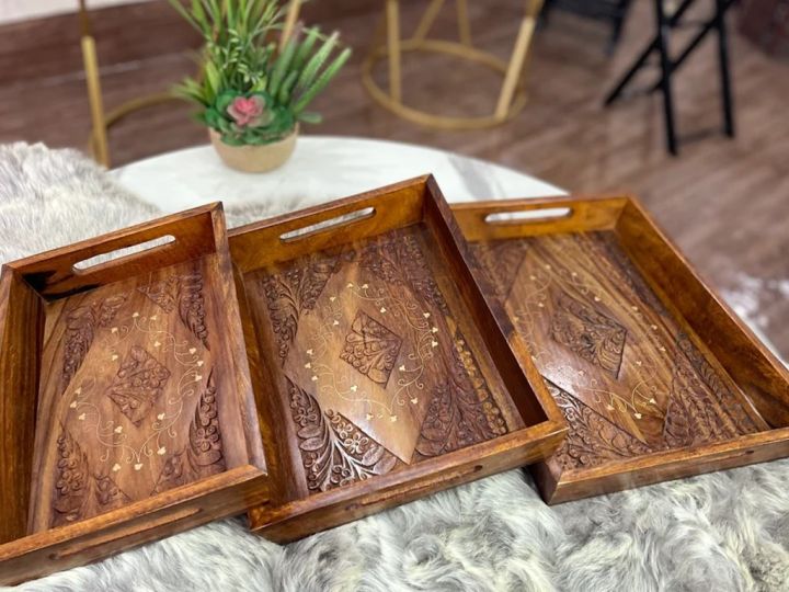 Pakistani Handcrafted Wooden Serving Tray with Elegant carving | Traditional Decorative Tea Tray | Handcrafted Wooden Serving Platters | Traditional Pakistani Cutwork serving Trays | Hadi wood craft