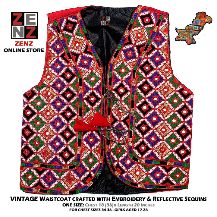 Pakistani Sindhi Traditional & Cultural Party Wear Waistcoat Koti for Ladies Women Embroidered Multicolour Embroidery Waist Coat