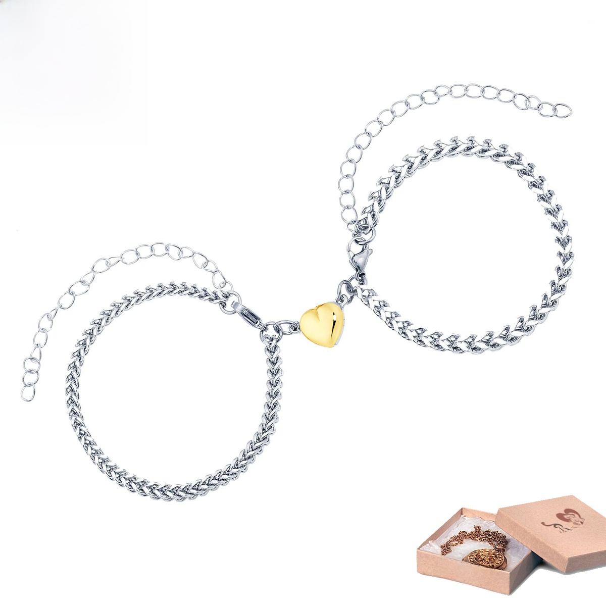 Pcs Set - 1 Pair - Magnetic Heart Bracelet For Girls and Women Couples - Stainless Steel Magnet Attraction Friendship and Love Couple Hand Band For Ladies - Best Friend Ship Bangle