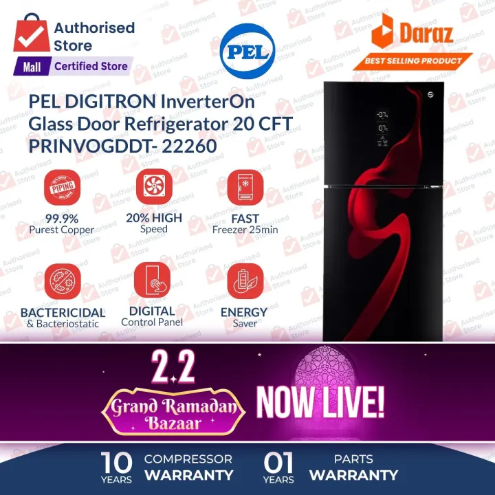 PEL Refrigerator | Model PRINVOGDDT- 22260 | DIGITRON InverterOn Flat Glass Door(NEW MODEL) | 18 Cubic Feet | Run on 100 Volts | Rapid cooling designed10 Year Compressor Warranty