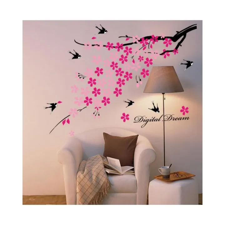 Flowers Wall Sticker Pink Birds DIY Wall Decor For Home/Office Colorful PVC Wall Paper Removeable Wall Decal