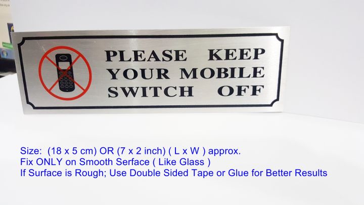 PLEASE KEEP YOUR MOBILE SWITCH OFF Plate - (18cm x 5cm) Aluminium Sign Plate (Mirror OR Glass Mountable Name Plate)- 1 Piece