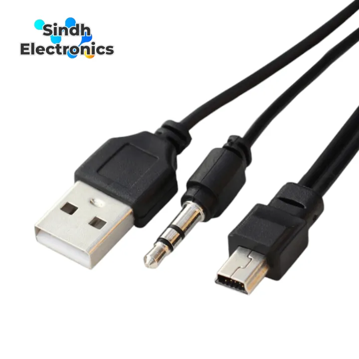 Portable Speaker Audio Cable USB Male To Mini USB 5pin + 3.5mm AUX Stereo