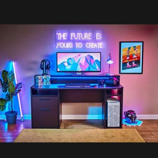 Power Z Gaming Desk Gaming Desk Computer Desk Workstation For Large PC Gaming Desk Or Home Office Desk Perfect Black Desk With Drawers & Storage