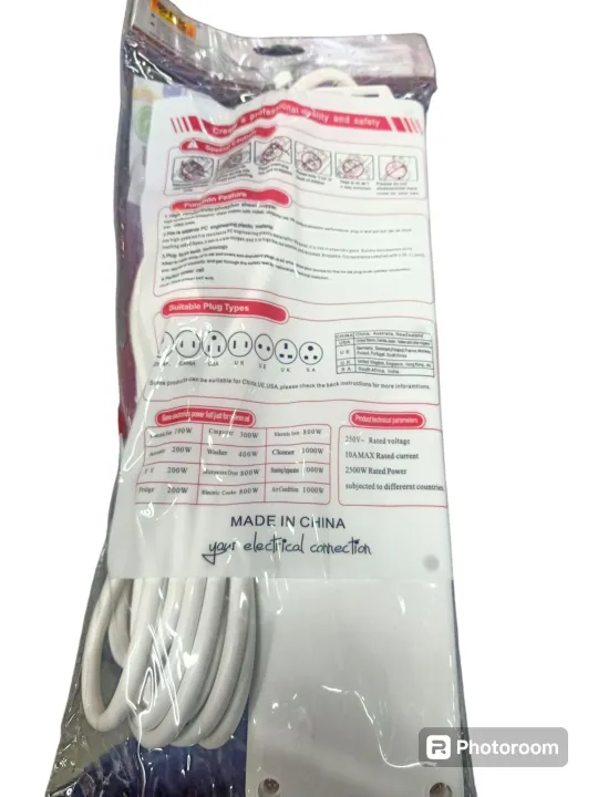PowerMax Extension Board with 5 Power Sockets, Individual Power Buttons, and 5-Yard Copper Wire (2500W)