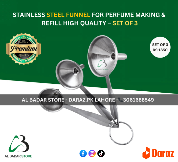 Premium Quailty Stainless Steel Funnel for Perfume Making & Refill – Set of 3: kitchen use / Perfume Making