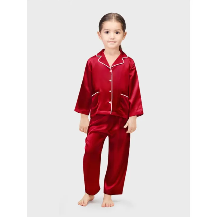 Premium Silk night wear nightwear night suit nightsuit night dress pajamas nighty for kids baby girl (maroon)