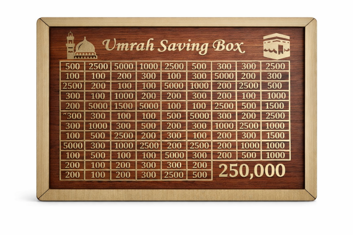 Premium Umrah Saving Box 250,000 / 3 Lakh PKR Goal – Wooden Money Saving Box for Umrah & Hajj | Umrah Mubarak Islamic Gift | Islamic Money Bank | Cash Savings Box for Kids & Adults | Islamic Home Decoration