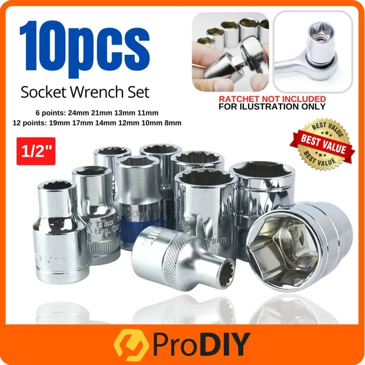 PRIDE 10pcs ( 8mm - 24mm ) 1/2 Inch Socket Wrench Set Impact Socket Set High Quality Tool for Workshop and House