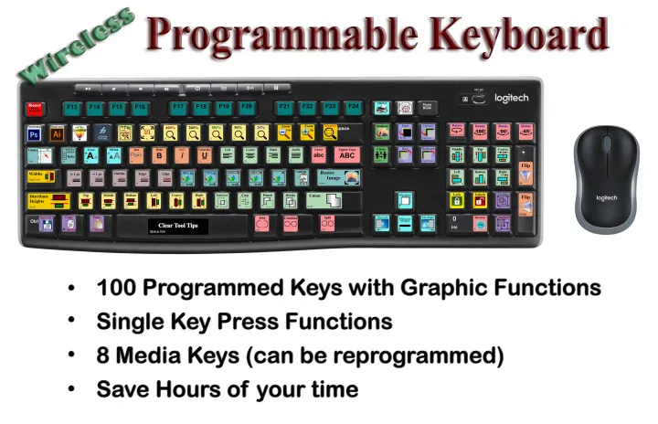 Programmable Wireless Keyboard 100 keys Pre Programmed with AutoHotKey for Pիotosիop Illustrator CorelDraw FreeHand