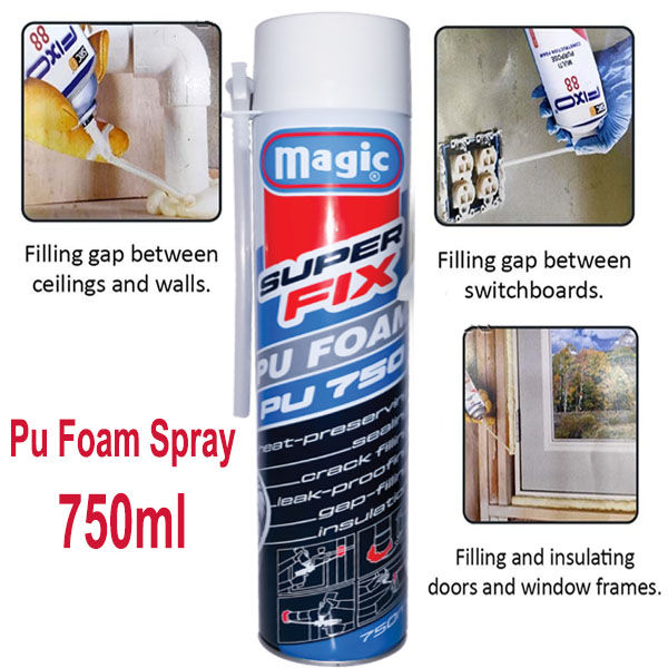 Pu Foam Spray 750ml Crack Filler Foam Foam Chemical/ Foam Insulation, fixtures parts & component cooling and heating component Magic brand