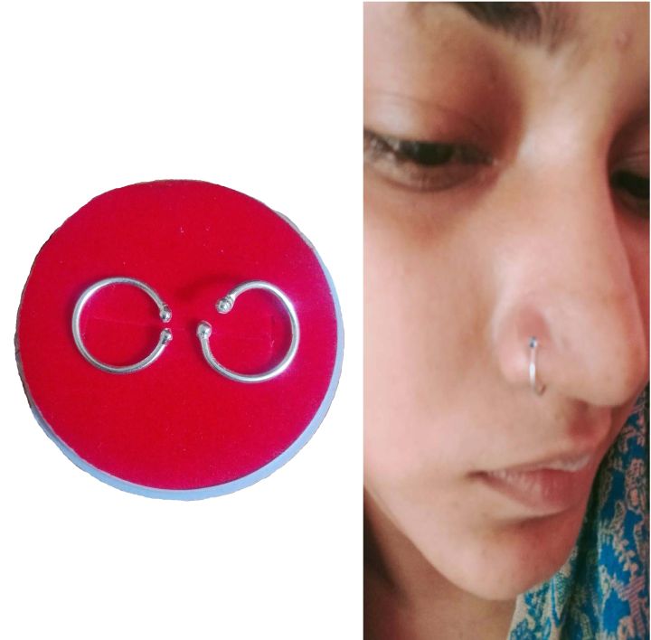 Pure Silver (chandi) Non Piercing Nose Ring with Two Side Bol End For Women
