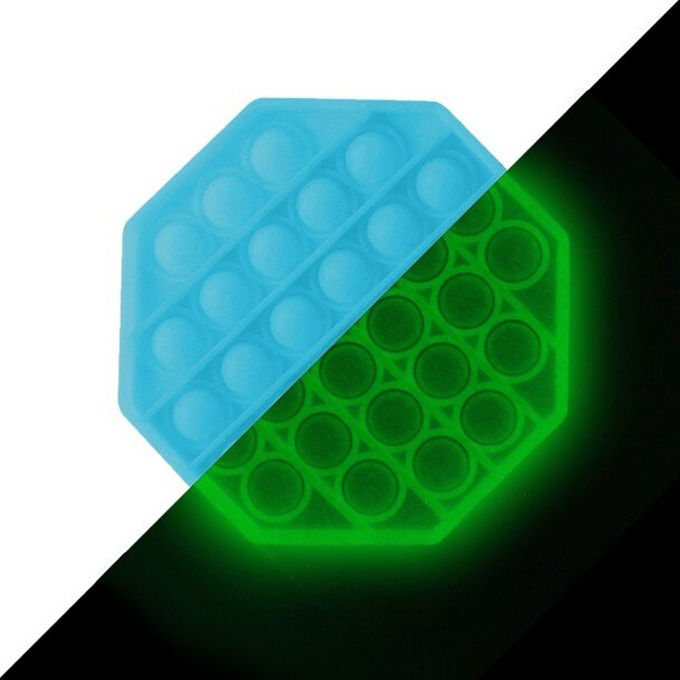 Push Pop Bubble Fidget Spinner Pop It Silicone Toy - Glow in the Dark - 5 inches - Octagon - Blue