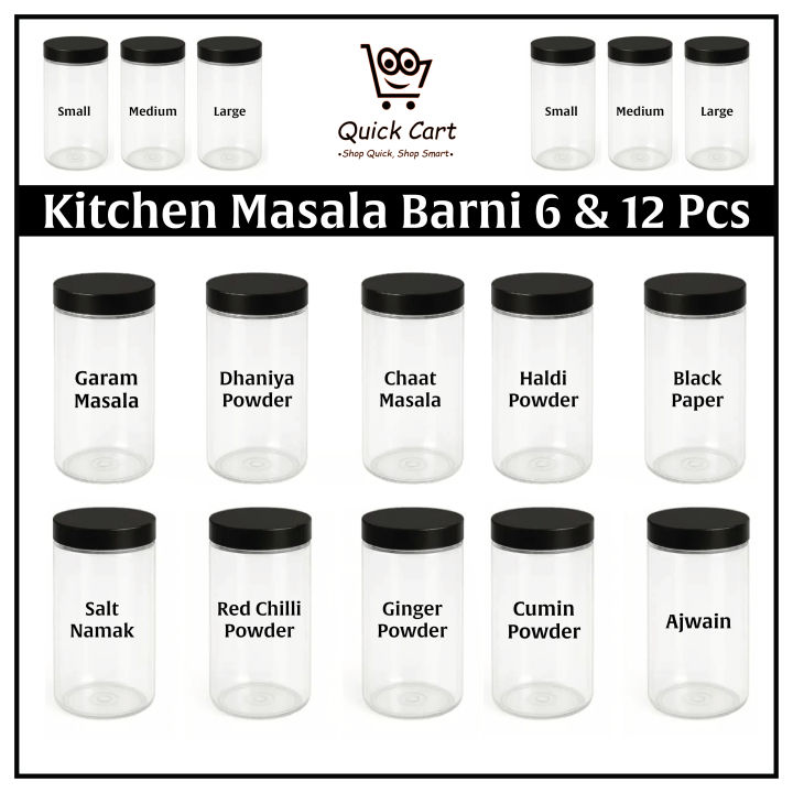 Quick%20Cart%20Durable%20Plastic%20Kitchen%20Spice%20Storage%20Jars%206/12%20Pcs%20Set%20with%20Lids%20-%20Medium/Large%20Sizes%20-%20Image%201