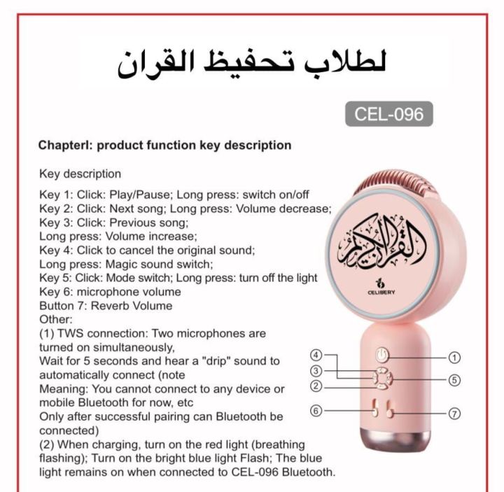 Quran Kamil Full Quran Installed - Live Microphone - Bluetooth Speaker - Voice Changer TWS System Rechargeable For Men's Women's & Kids Quran Training Gadget