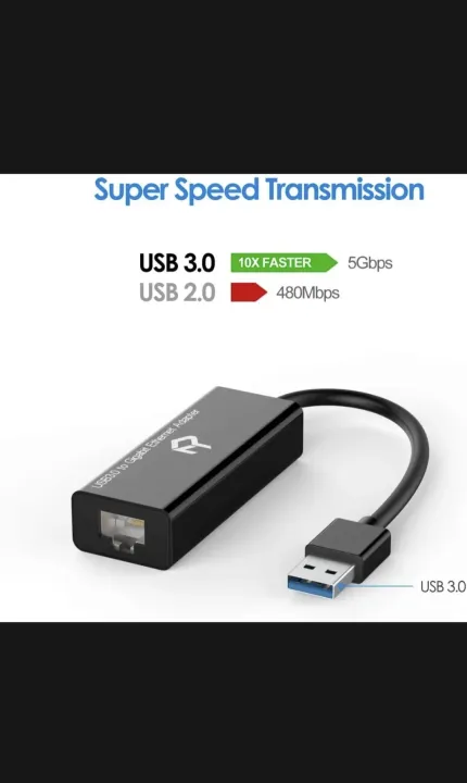 Rankie USB Network Adapter, USB 3.0 to RJ45 Gigabit 10/100/1000 Mbps Ethernet Internet Adapter (Black) Network Interface Controller Adapter