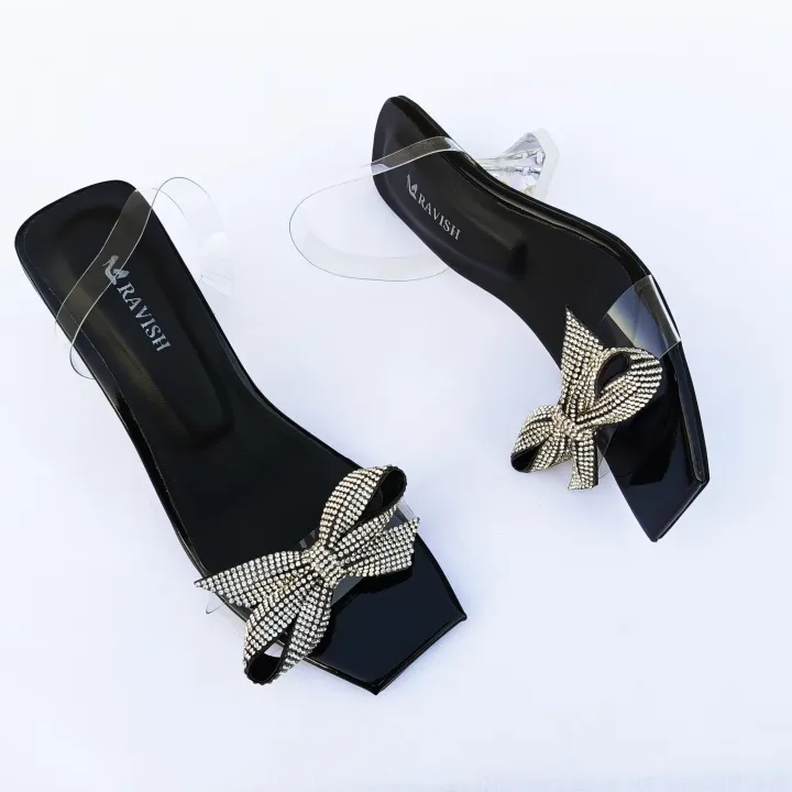 RAVISH Marigold Transparent Heels for Women - Elegant Bow Design, 2.5-inch Heel