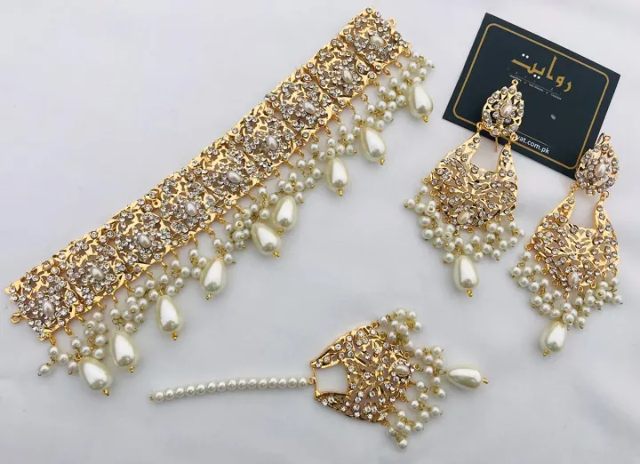 Rawayat Jewellery - Choker Set For Girls - Hyderabadi Choker Set-11 (Pearl) - Jewellery for Girls