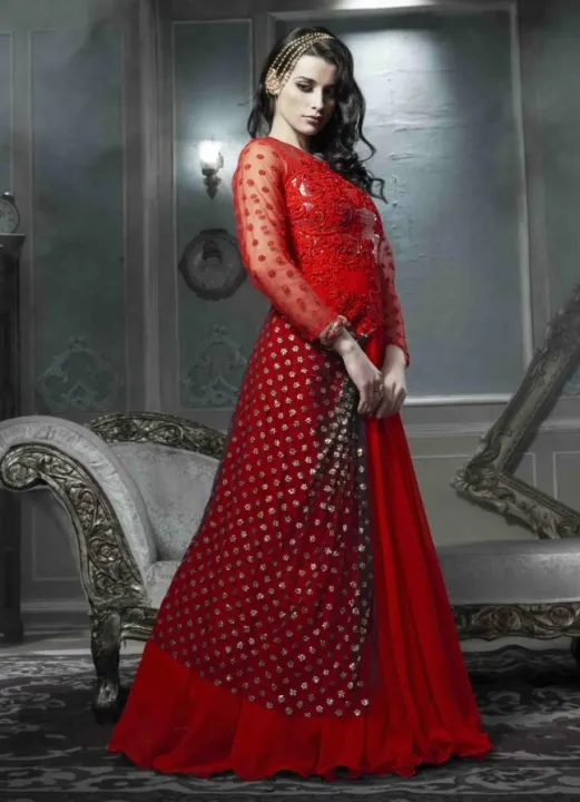 Red Colour Net Embroidered Stitched Anarkali Style Designer Gown Siya-1006